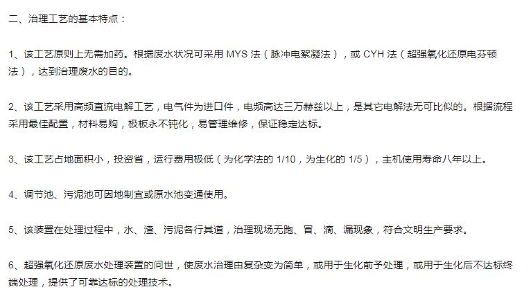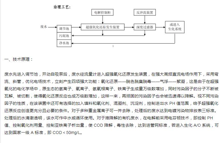 超強(qiáng)氧化還原廢水處理裝置(CYH法)處理各種有機(jī)廢水、各種重金屬廢水